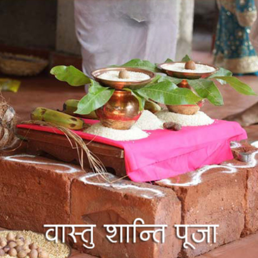 हम वास्तु शांति (प्रकृति और उनके तत्वों और प्राकृतिक शक्तियों और पर्यावरण के देवता) की व्यवस्था करते हैं।